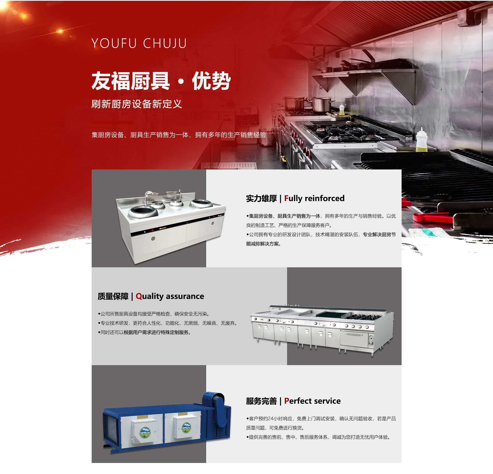 安徽友福厨具制造有限公司是从事宾馆、酒店、饭店、企事业单位、大中专院校、医院等不锈钢厨房设备设计。制造,工程安装及厨房配套设备销售的专业零售商。公司坚持“以质量求生存,以信誉求发展”的宗旨,严格、科学管理并以其优良的品质和完善的售后服务体系赢得了广大客户的良好赞誉,质量高的品质、倍受客户的信赖和赞誉。展望未来,安徽友福将热忱期待与新老客户携手共创美好的明天!